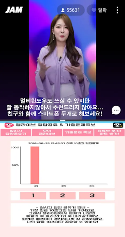 - Jam Live / The Quiz Live screen and the same mock test