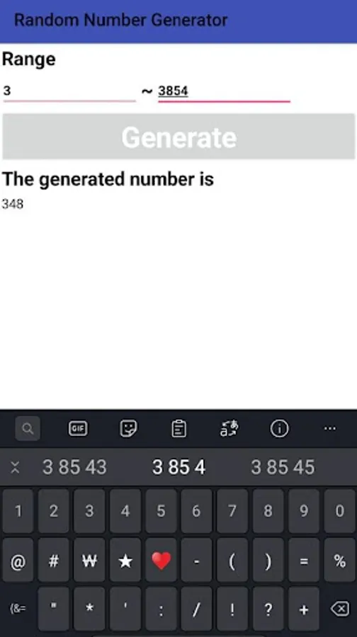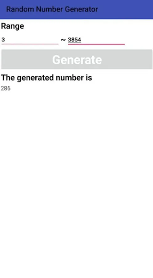 This app generates random numbers for you. Just set the range for the number. And then click the generate button to get the number.