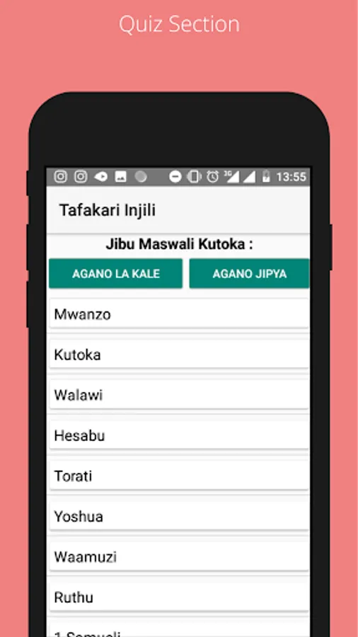 Huu ni mchezo wa maswali na majibu kutoka katika sura mbalimbali za biblia , ambazo zimegawanyika katika makundi matatu,