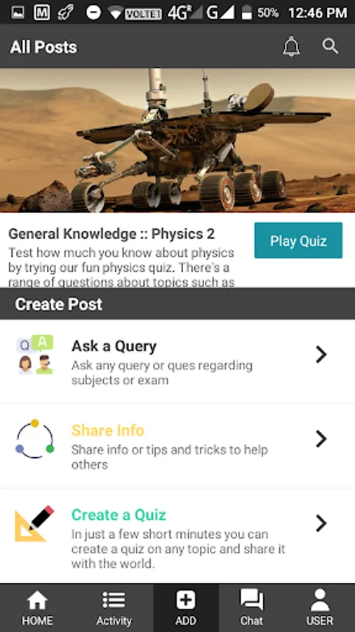 Totally its the fun experience of trivia having an interest based community studying or interested in the same topic, and hence creating your own quiz via quiz maker adds more fun thus making learning fun, we have to accept learning is kind of boring so lets add flavour to it, trivia/quiz is always fun people learn a lot, even if it not worth so why don't we use the power of trivia to transform the learning process rather than rotten to fun, Our quiz making concept is totally unique and totally unique dought posting options for the fast answering