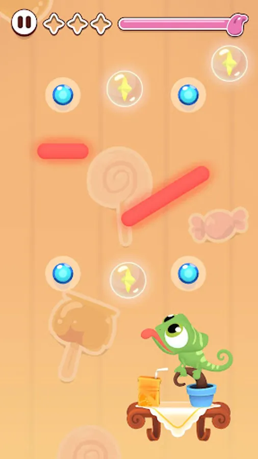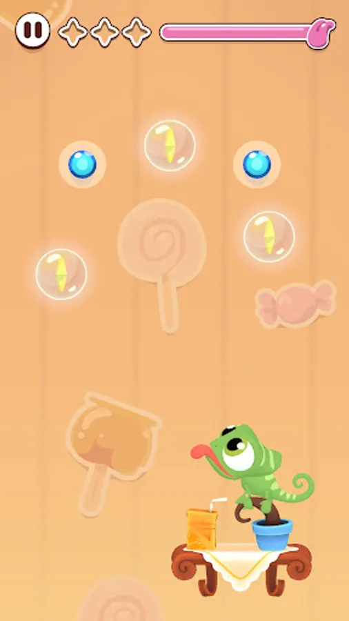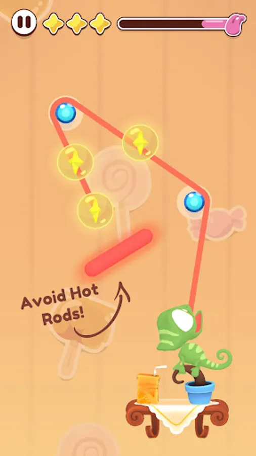 Collect stars by dragging the chameleon's tongue, dodging hot rods and making it happy!