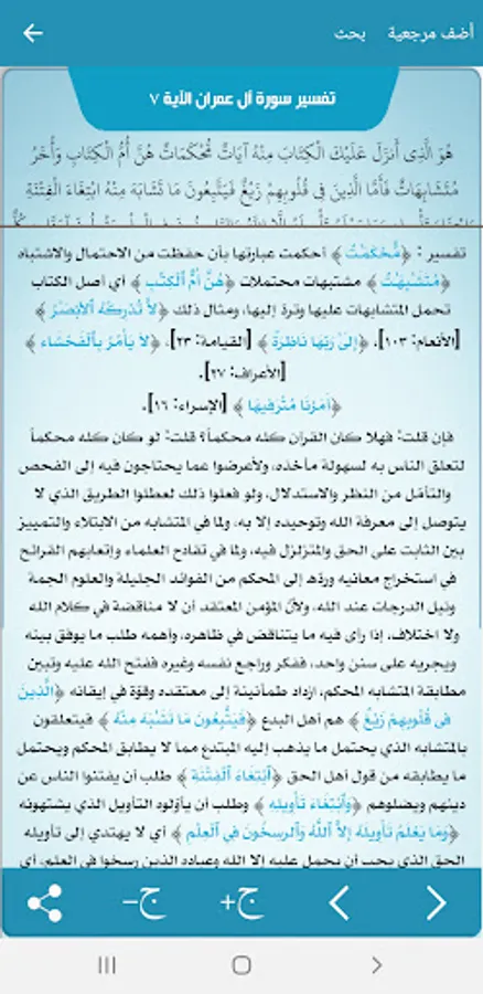 5- Browse between the interpretation of the verses by shifting the screen to the right and left or through the navigation buttons.