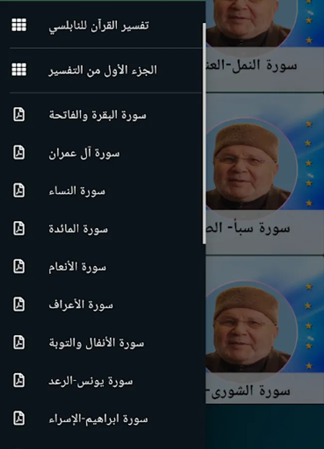 An application that includes a written interpretation of the Holy Qur’an by Sheikh Ratib Al-Nabulsi