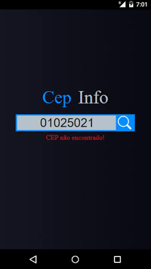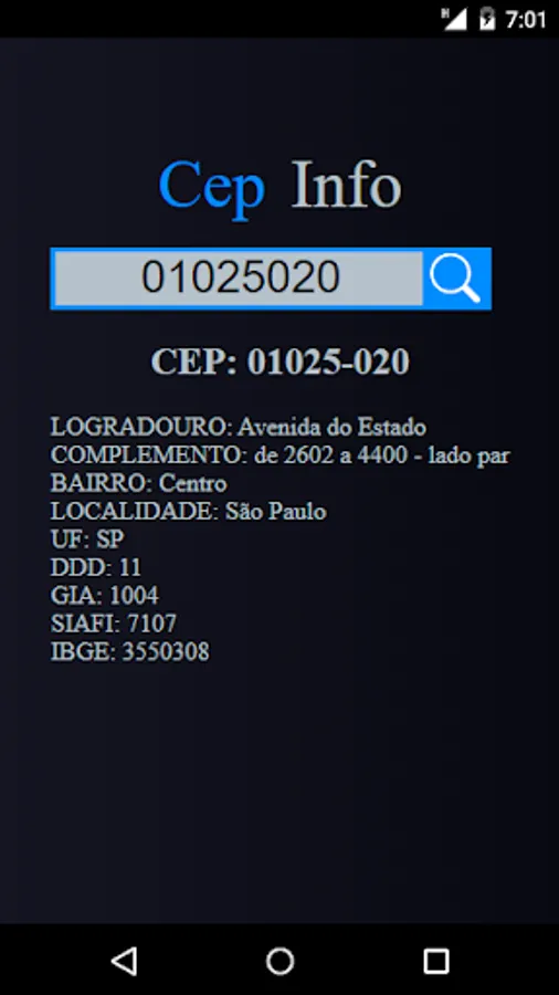 Search application for information related to an informed CEP (Postal Address Code) number.