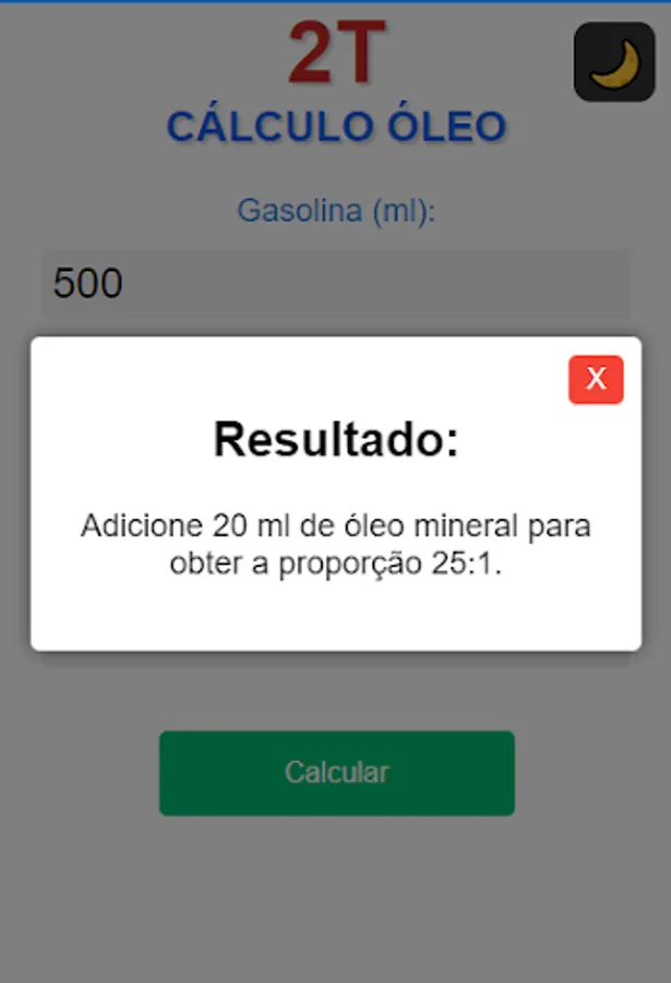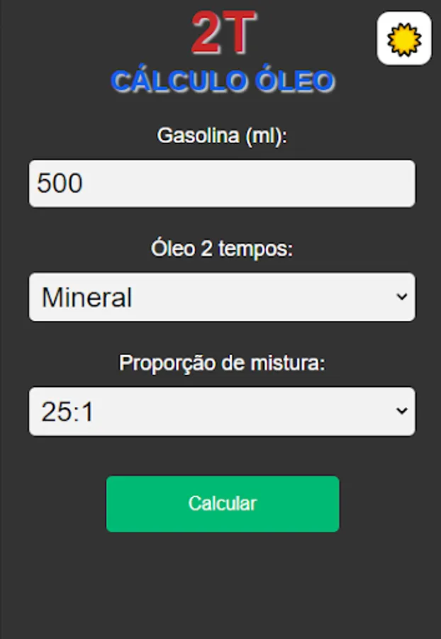 Application that assists in the calculation of the oil/gasoline mixture for two-stroke engines.