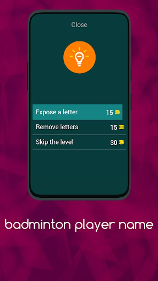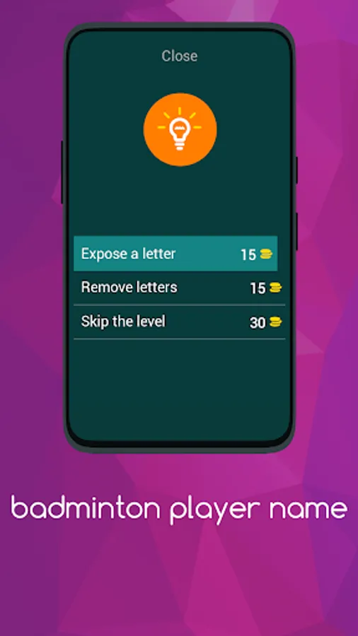 guess the name according to the picture shown. this game is perfect for adults and kids in general. This game is perfect when we are relaxing at home or when we are outside the house when we are bored and have no daily activities. please download for free on playstore.