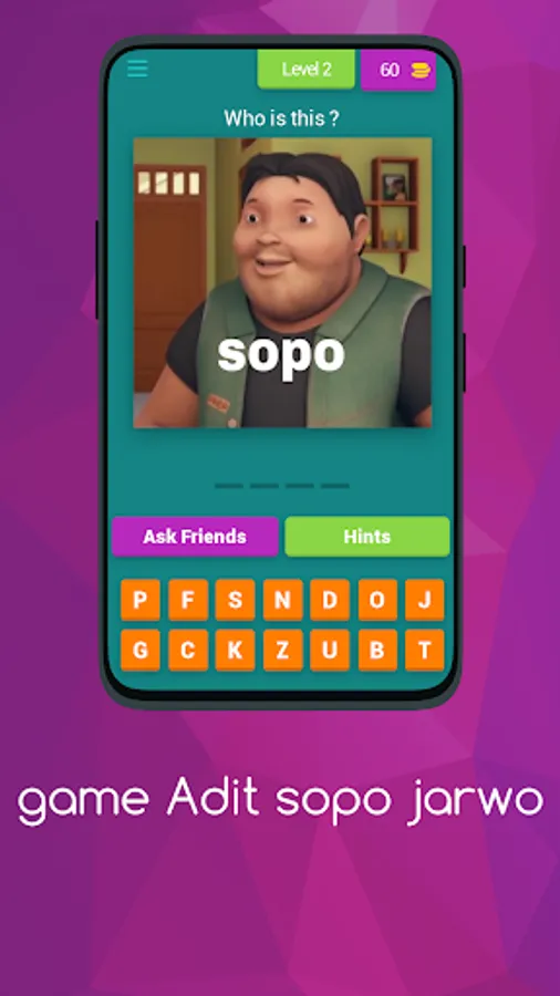 guess the name according to the picture shown. this game is perfect for adults and kids in general. This game is perfect when we are relaxing at home or when we are outside the house when we are bored and have no daily activities. please download for free on playstore.