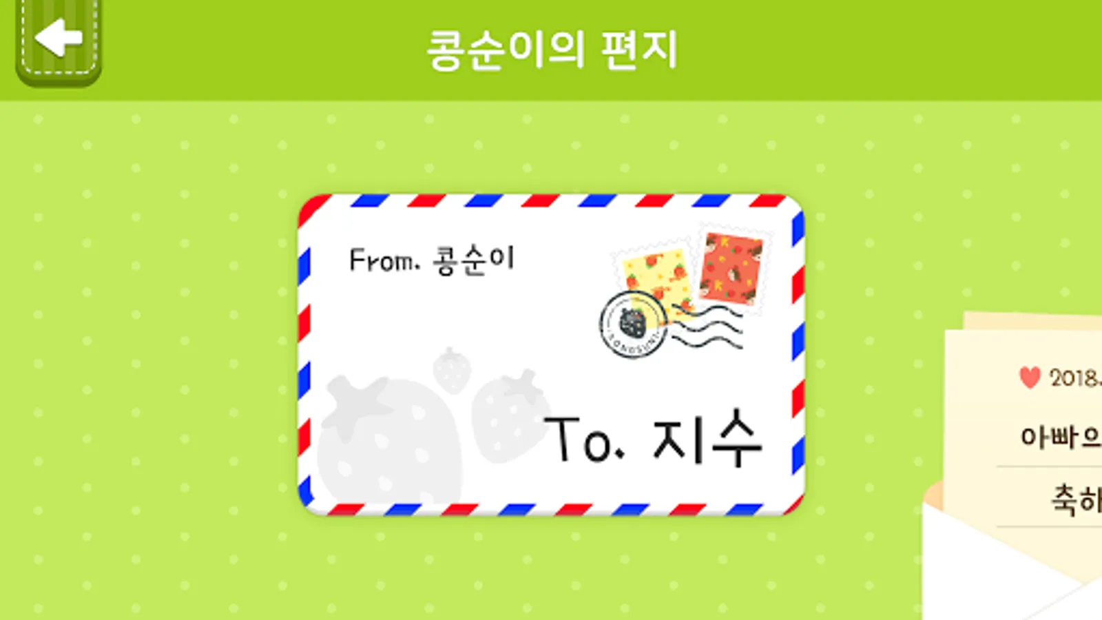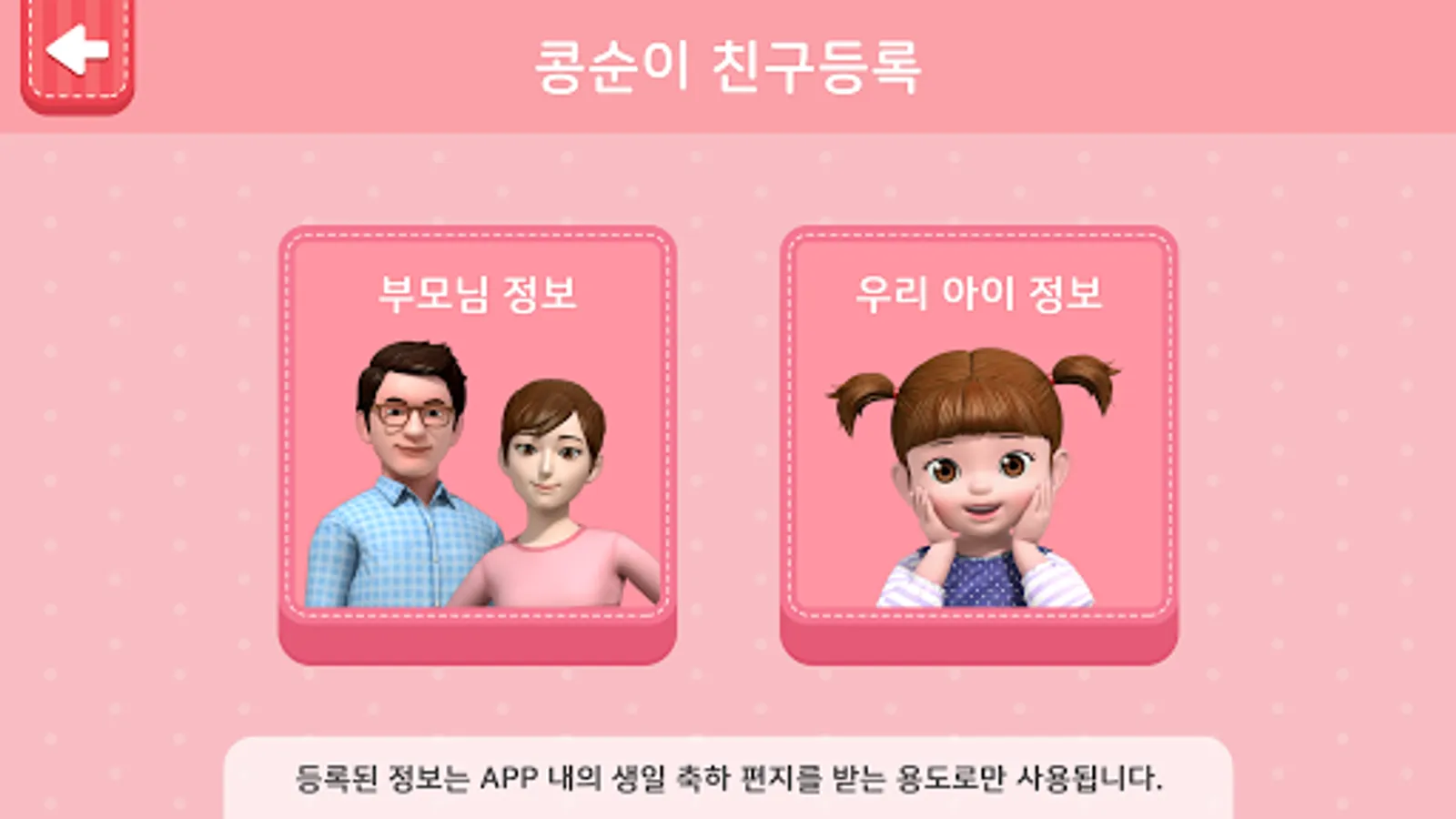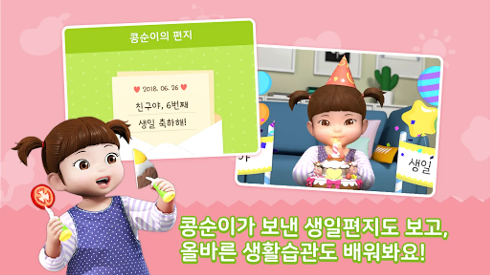 * 엄마 아빠 그리고 아이의 생일을 미리 등록해보세요~! 생일이 되면 콩순이가 보낸 멋진 생일축하 영상편지를 볼 수 있어요~!