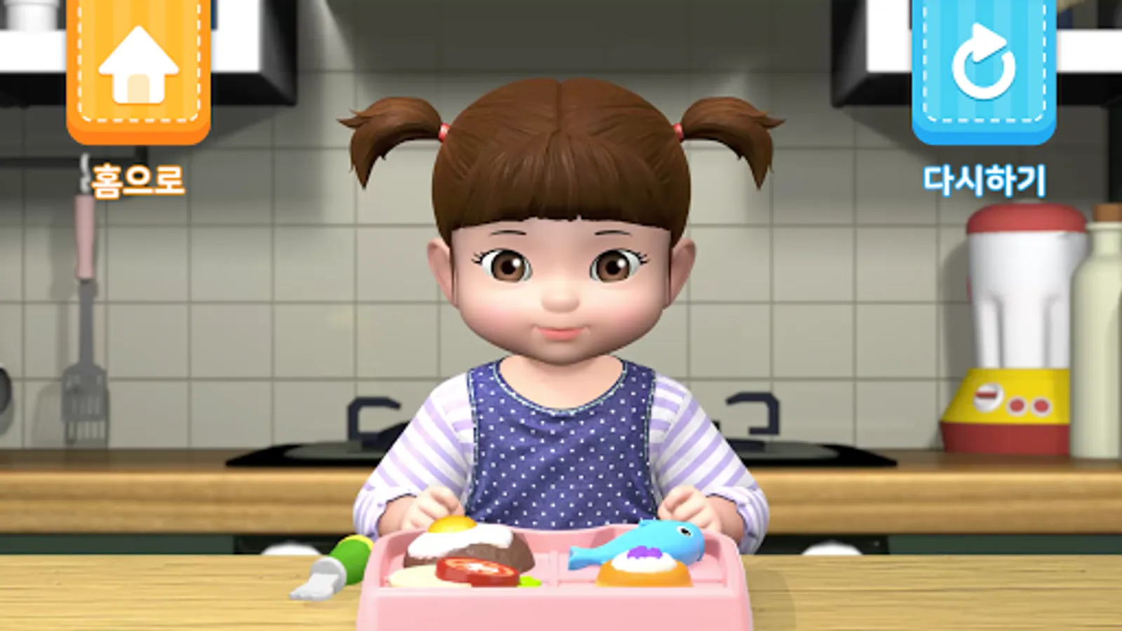* 장난감의 음식버튼을 콕콕~ 콩순이가 스마트폰 화면에서 내가 누른 음식을 함께 먹어요~!