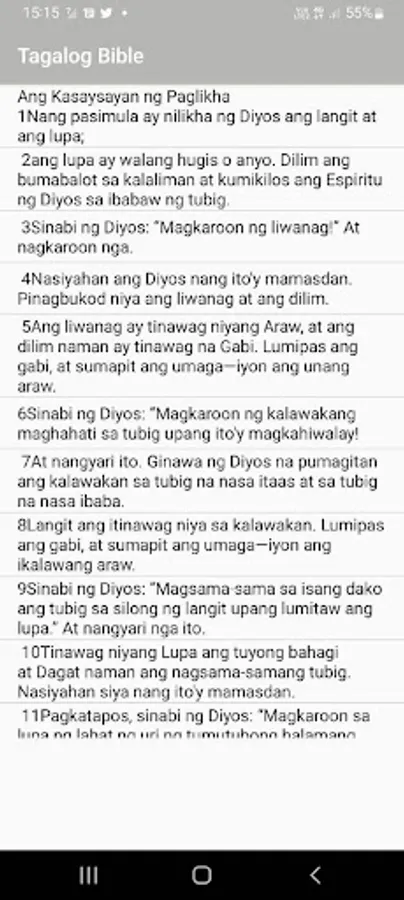 This app offers a well Designed Tagalog bible for Philippines. The Philippines bible comes with amazing interface and great features which facilitate easy use. Users can bookmark, Highlight and share their verses with a single click.