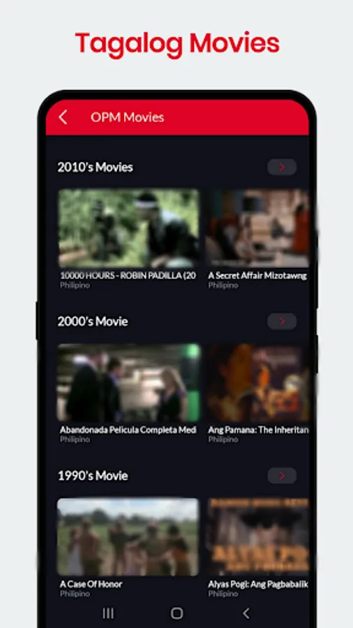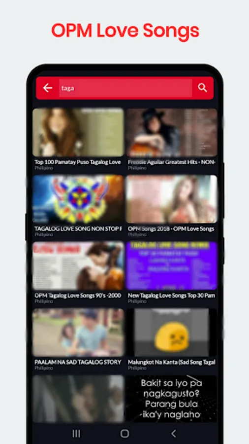 Introducing OPM Love Songs App, this app provide different opm love songs and movies. In this app you are able to search separate song and add that to your favorite collection. All video songs and music are free for users. It is a free music player. Search your favorite love song and play it with good and clear sound. Watch all Old Tagalog and OPM Video Songs playlist. This app save your time to find Tagalog Love Songs and Movies with fast search capability.