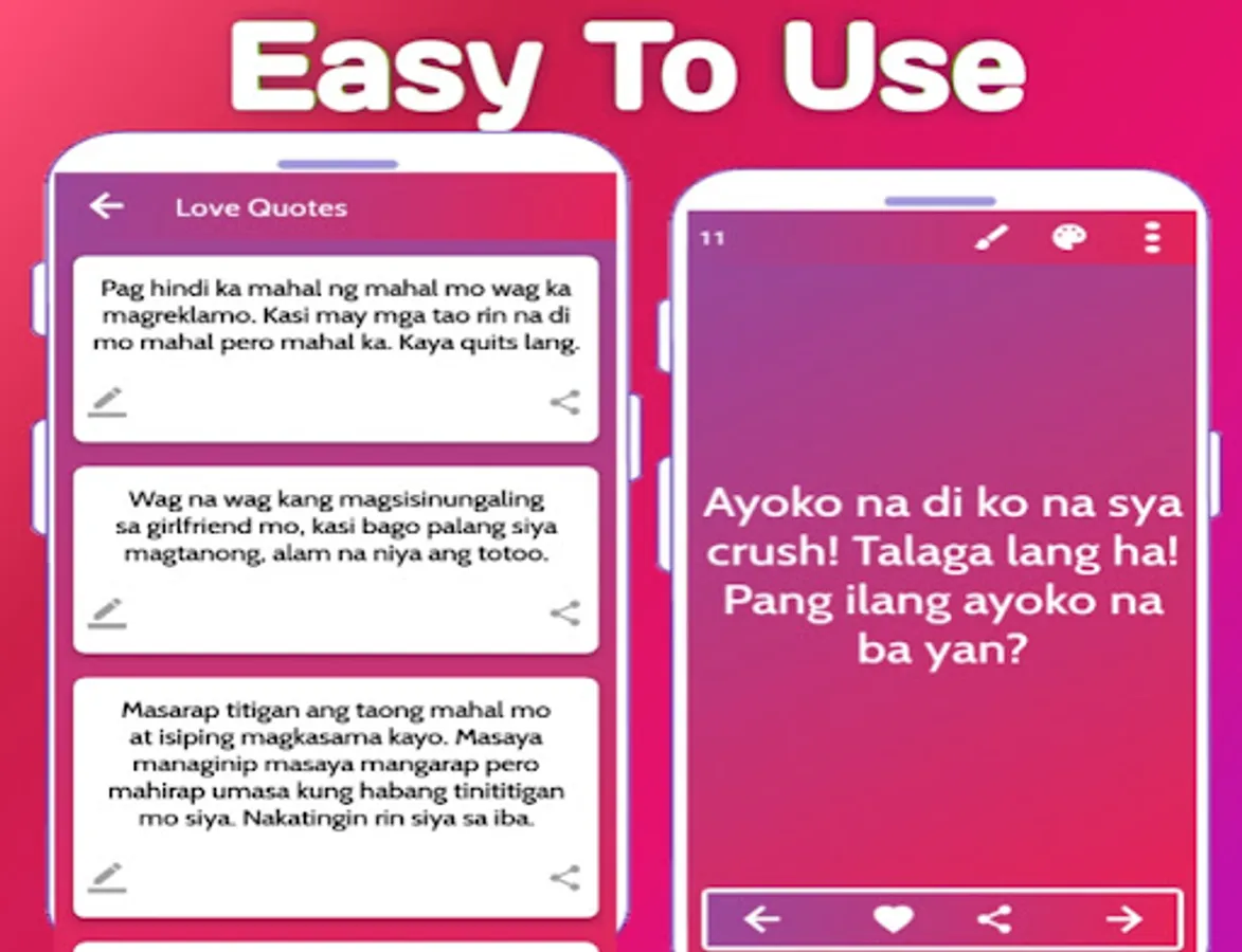 Tagalog Quotes & status in tagalog / filipino app helps you stay in touch with family and friends.