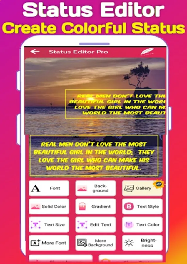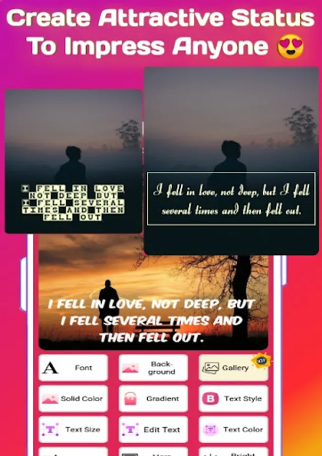 5. Quotes editor tool:- Write quotes or status or choose from given list with different color and style.