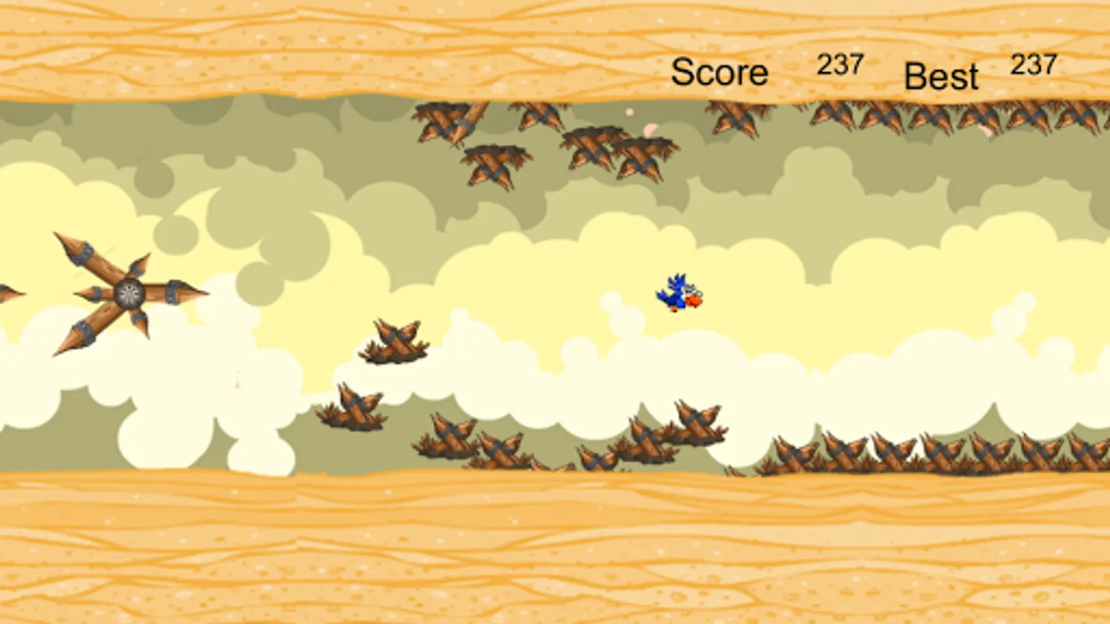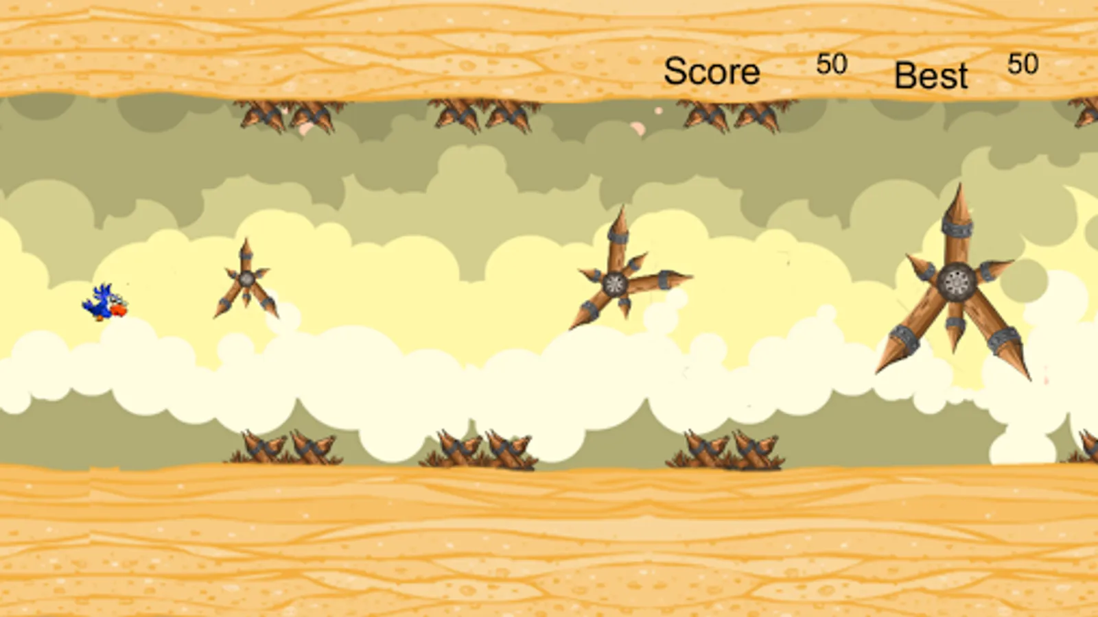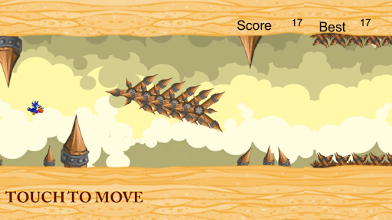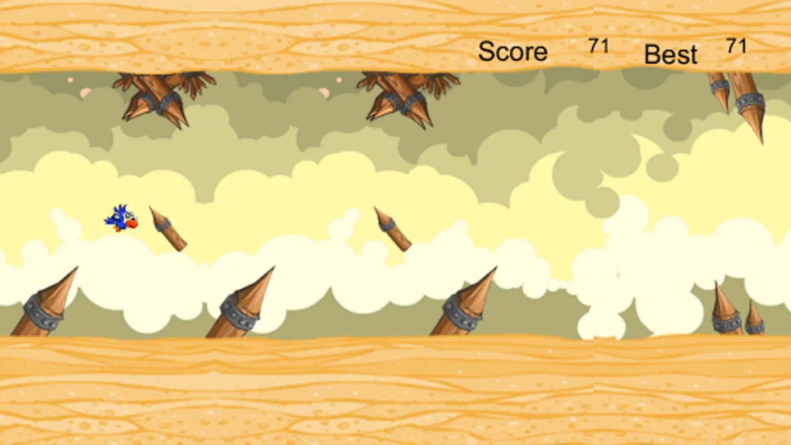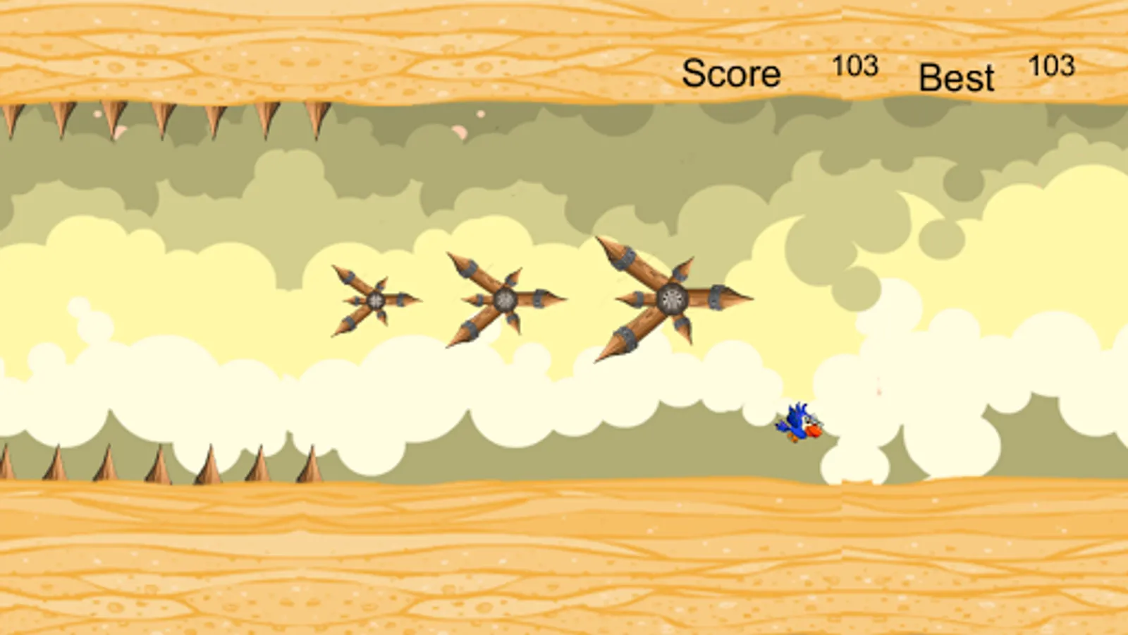 Help Dodgey the Bird cross the dangerous and spikey wooden world by dodging ridiculous and unpredictable obstacles.