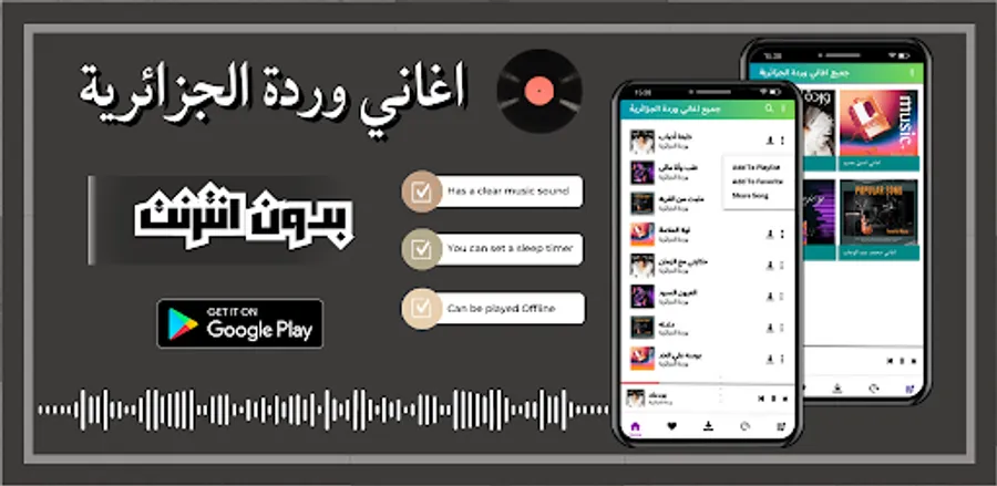 وردة الجزائرية بدون انترنت باستخدام تطبيق الموسيقى هذا ، يمكنك الوصول إلى الموسيقى المفضلة لديك والاستمتاع بها في أي مكان وزمان عبر هاتفك المحمول.
