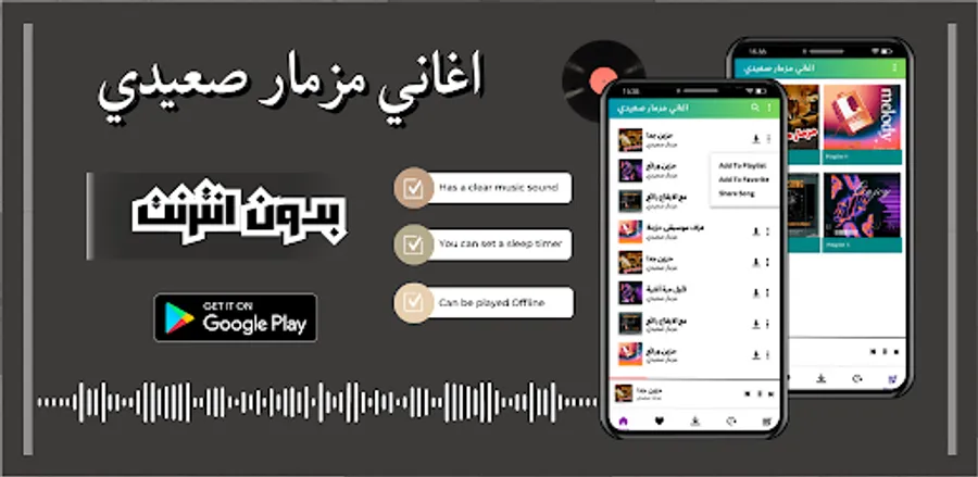 مزمار صعيدي بدون نت باستخدام تطبيق الموسيقى هذا ، يمكنك الوصول إلى الموسيقى المفضلة لديك والاستمتاع بها في أي مكان وزمان عبر هاتفك المحمول.