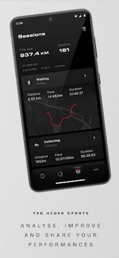 - Get the overview of your sessions tracked with your TAG Heuer Connected watch (Running, cycling, walking, fitness, and other; golf is to be consulted on the dedicated TAG Heuer Golf app)
