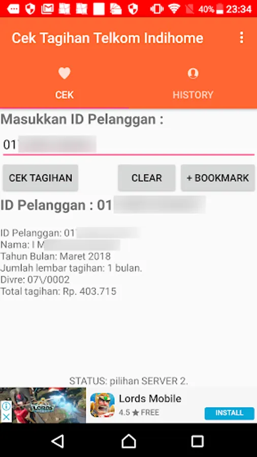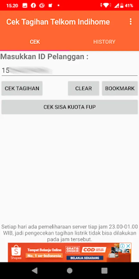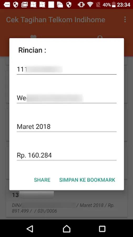 Application to check internet / telephone bills Telkom IndiHome for bills every month (postpaid).