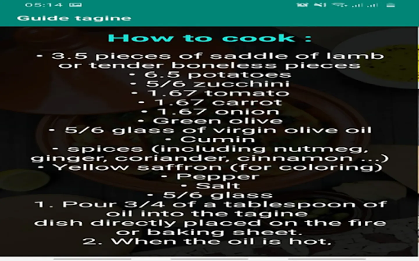 In this Application, You Will Learn How To Cook The Moroccan Tajine Step By Step In The House. And You Will Learn About The Culture Of Moroccan Cuisine, And Enjoy Healthy Eating Delicious In Just A Few Minutes And Easily.