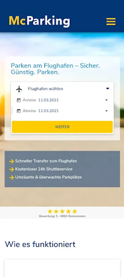 The McParking app allows travelers to book inexpensive and at the same time secure parking options near the airport. Our own parking space at Berlin Brandenburg Airport (BER) is particularly easy to book. Our free shuttle takes you and your luggage to the terminal in a few minutes and picks you up there again. Manage your parking space bookings conveniently on your mobile phone and travel completely relaxed.