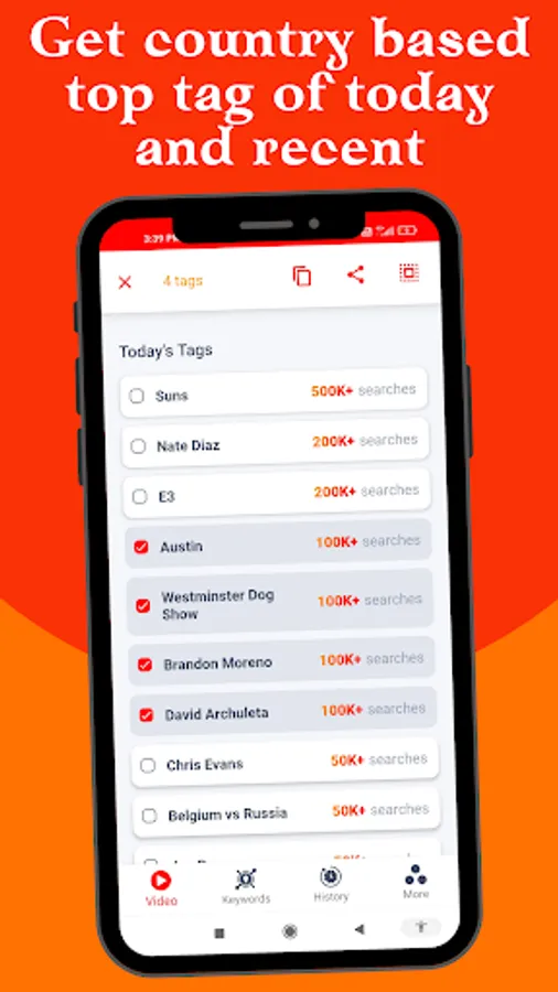 Tag you - This app allows you to view hot tags associated with any video and find hot keywords used all over the world based on country