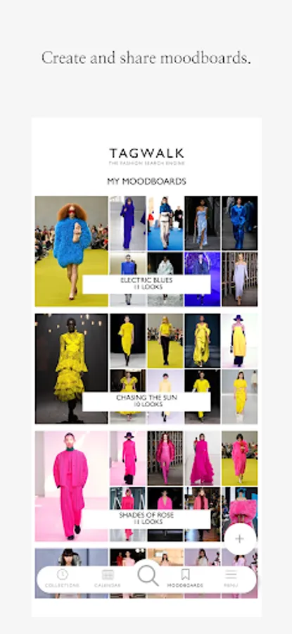 - Moodboard: create your own personal moodboards to save your work into your folders. You can share them on social media or to your contacts if wanted.