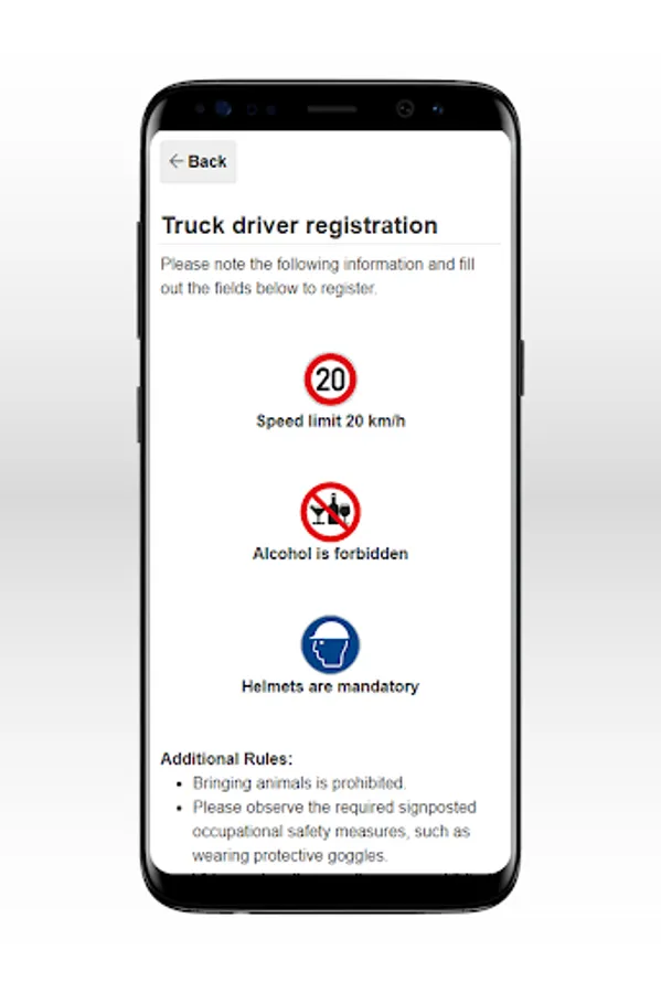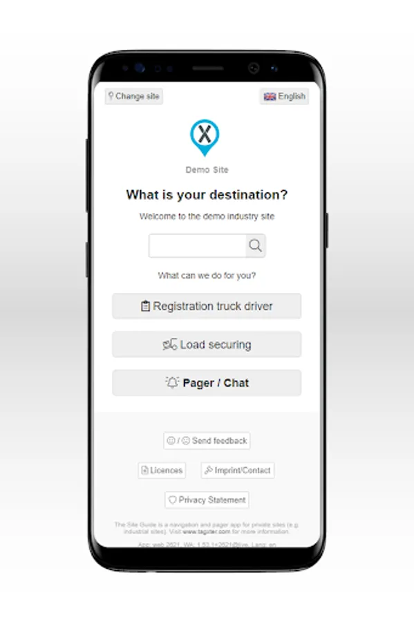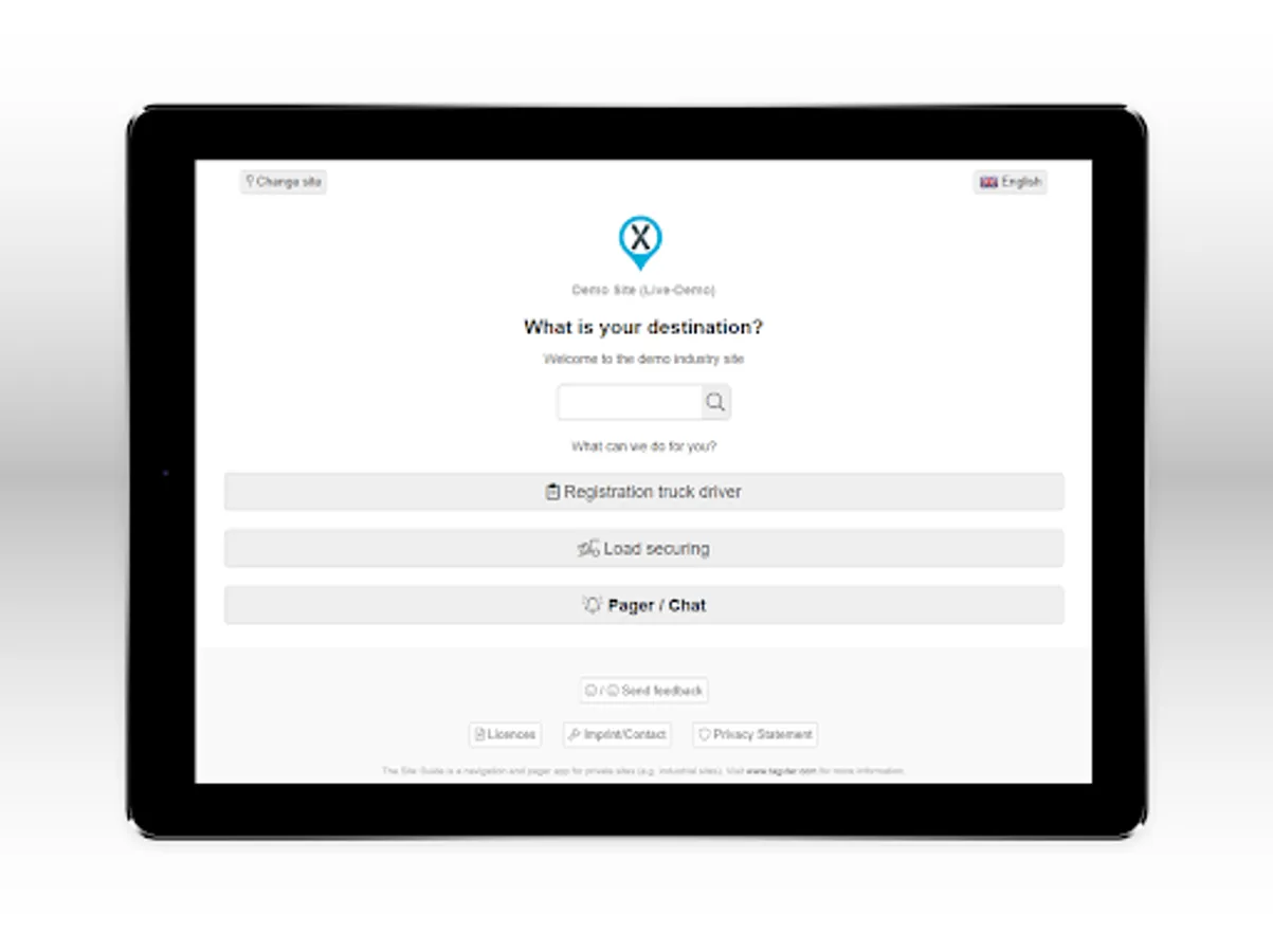 With the Site Guide Navigation & Pager App you can navigate within many private and company premises - i.e. where normal navigation devices do not work. Depending on the site, different functions are available on the site. For example, a navigation (truck, car, pedestrian) but also registrations, safety instructions or the use of the pager function.