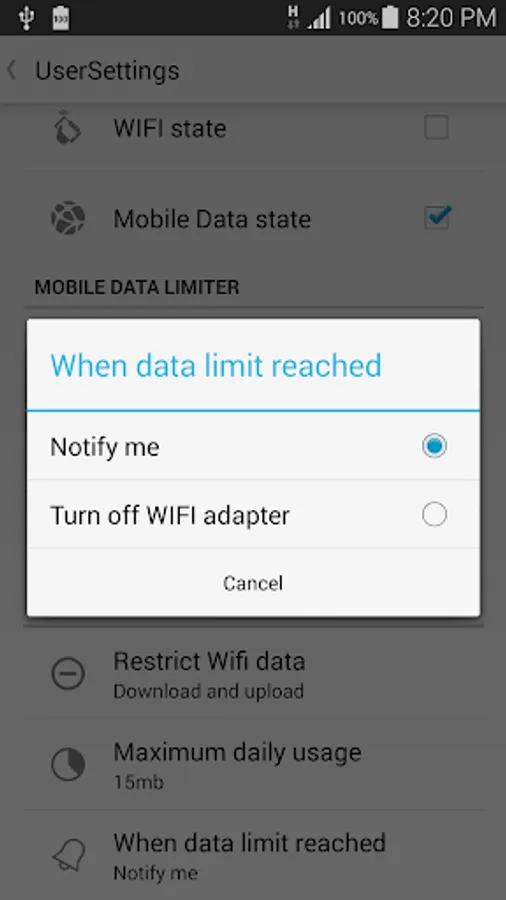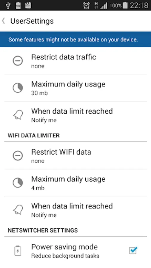 - Restrict daily sent/received data traffic over WIFI and Network.