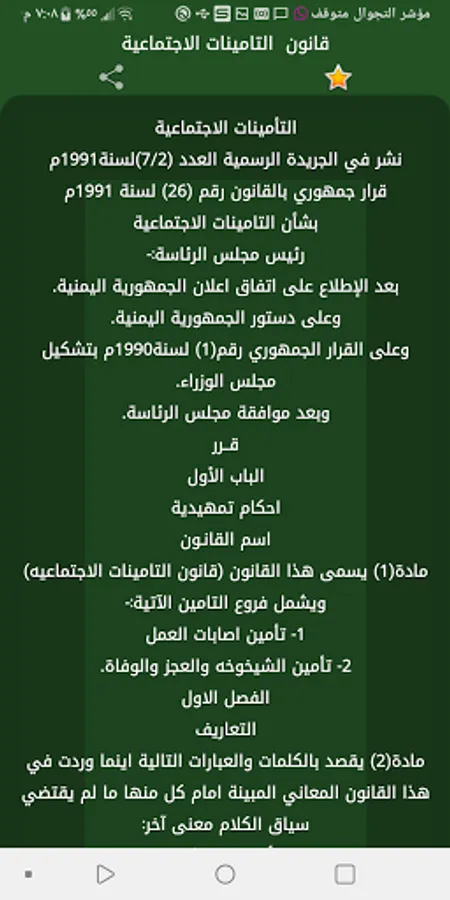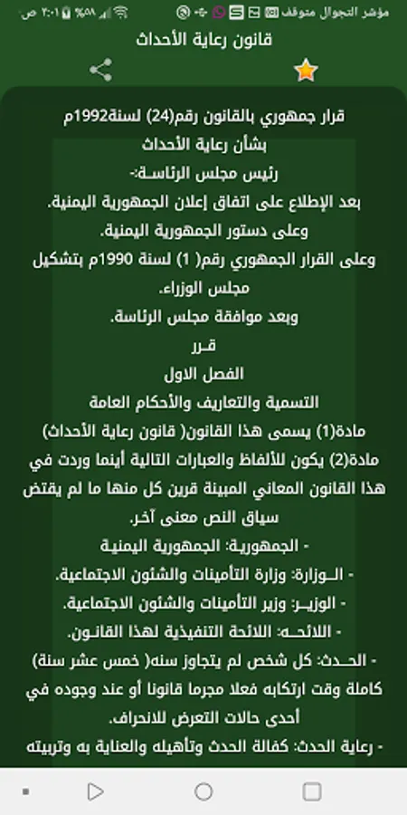 - The first application of Yemeni laws contains a set of laws