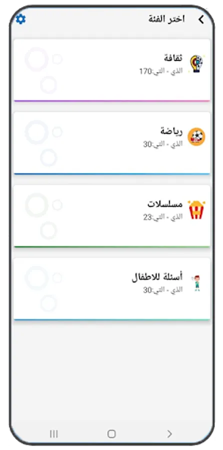 The Questions Challenge application contains many diverse areas, and each field of knowledge contains several levels, including easy questions and answers, difficult questions and answers, and general information, in addition to that each level contains 10 questions. For each question there are four choices, only one of which is correct. To develop your general culture, he corrects your answer before going to the next question.