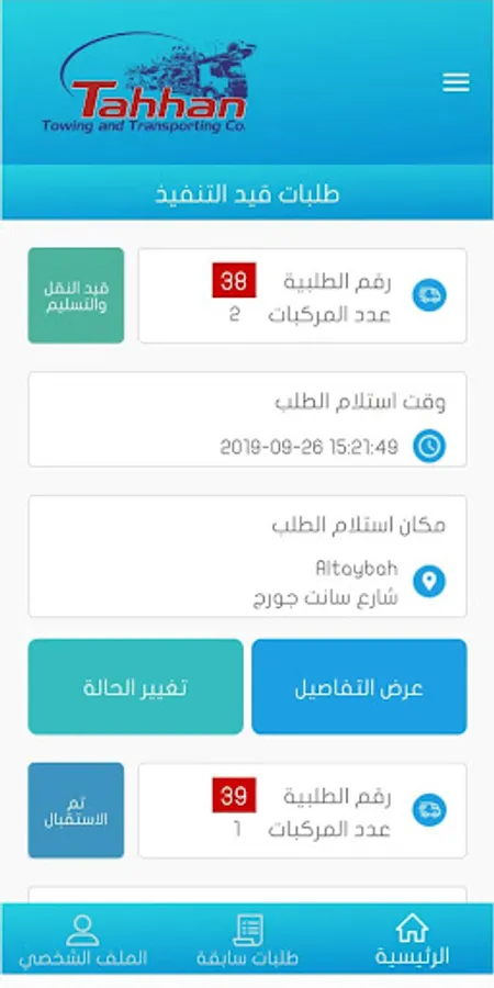 Tahhan application use by drivers to receive and tracking orders from customer to another, where they are charging cars from location to another