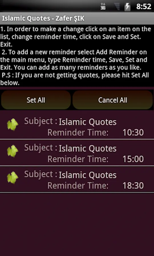 This application includes nearly 2000 carefully selected Islamic Quotes by eminent Islamic figures and the Holy Quran.