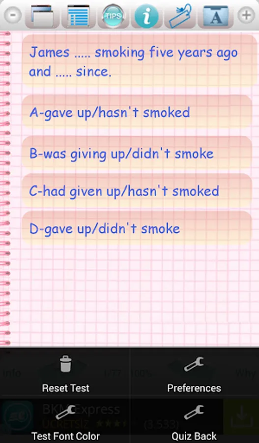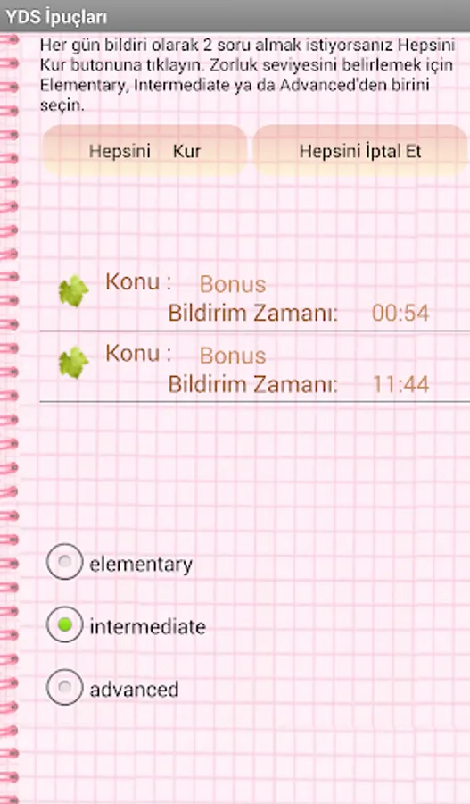 Attention: If the questions are not received as a notification after the last update, please uninstall the application and REINSTALL it.