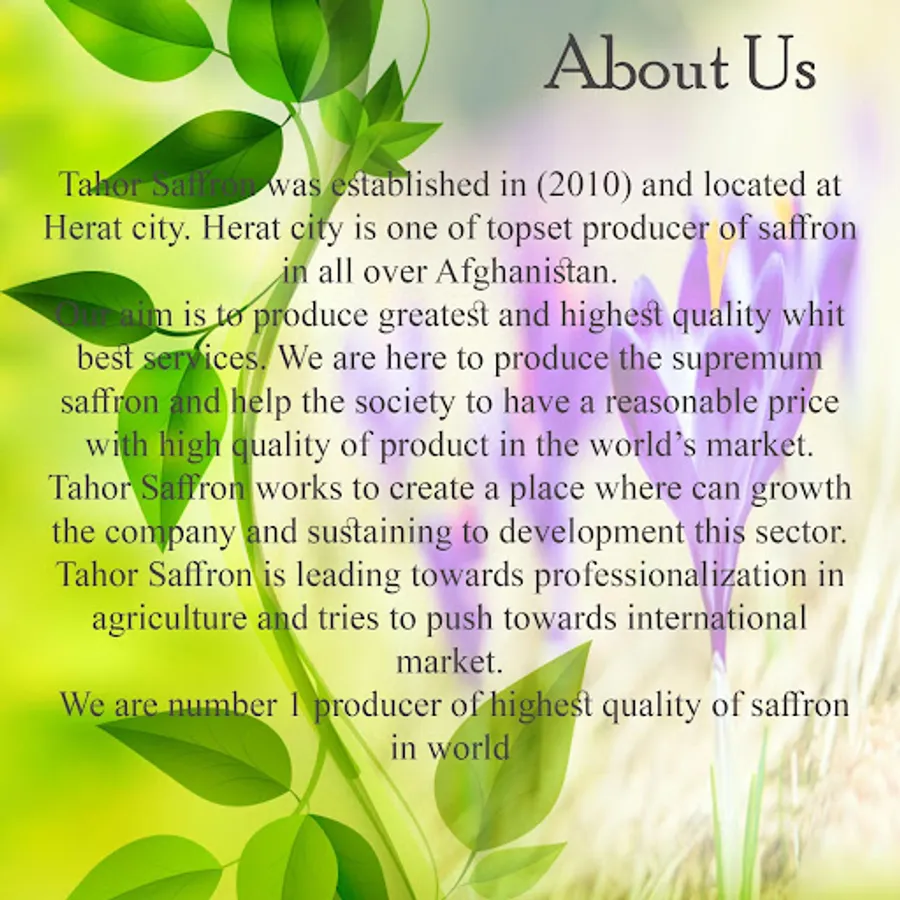 Tahor Saffron was established in (2005) and located at Herat city. Herat city is one of topset producer of saffron in all over Afghanistan.