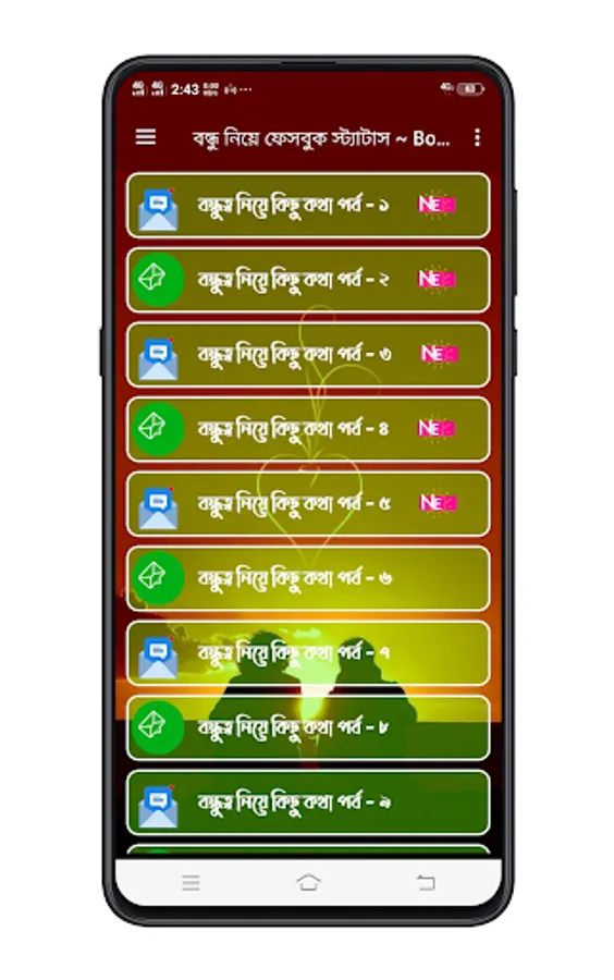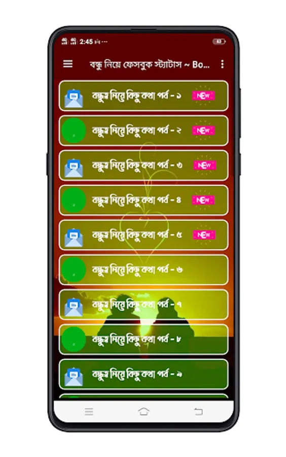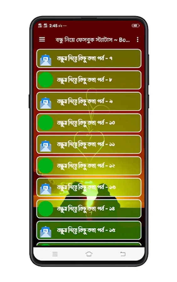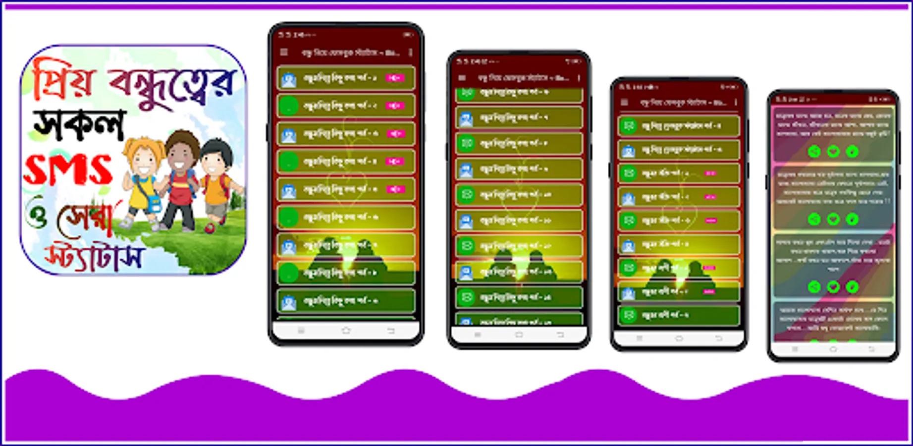 এই অ্যাপটি সাজানো হয়েছে সকল ধরনের বন্ধুত্বের এস এম এস,বন্ধুর ভালোবাসা এস এম এস,বুন্ধুকে নিয়ে কষ্টের এস এম এস,বন্ধুত্বের এস এমএস।