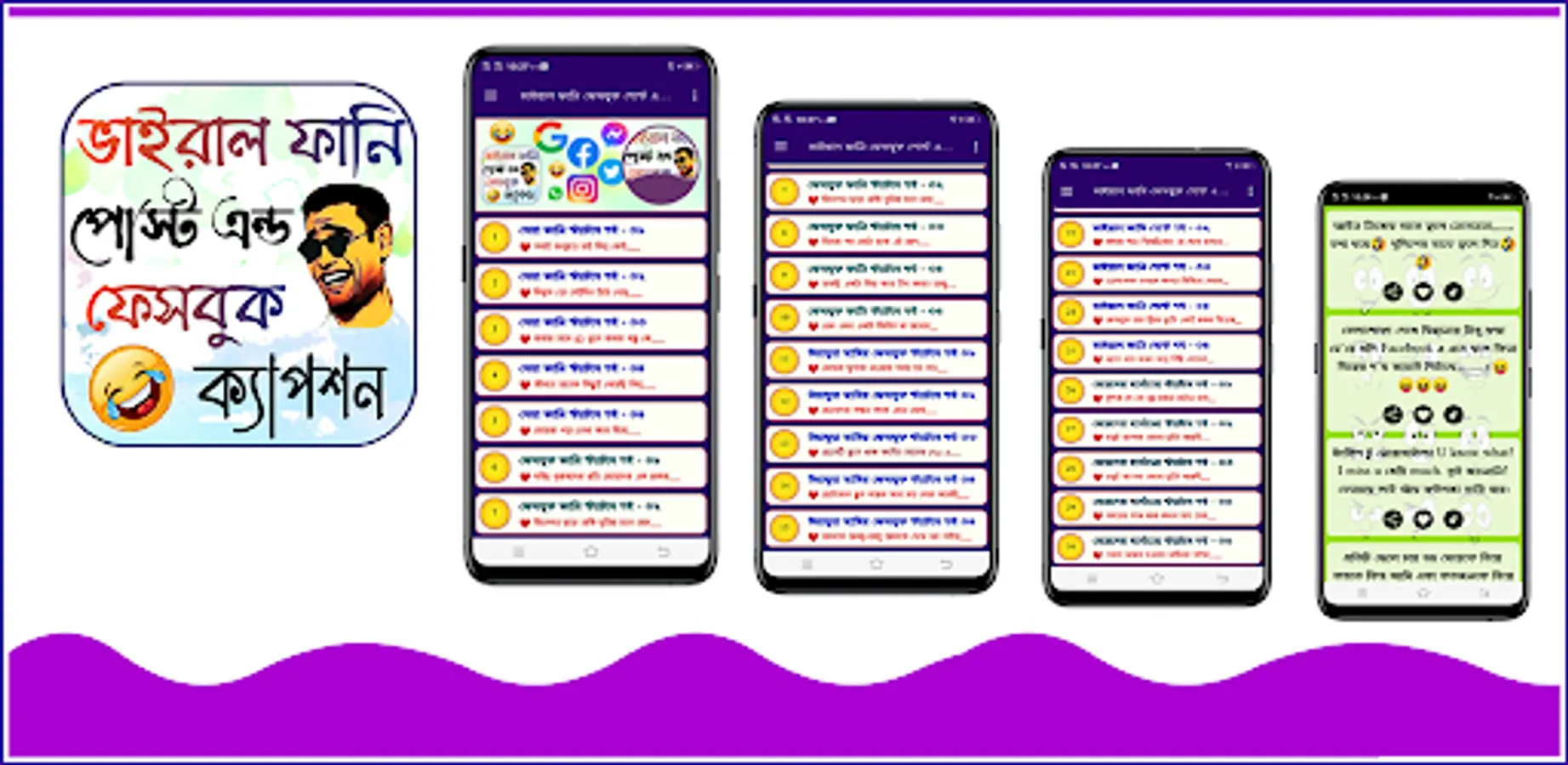 আজকের এই অ্যাপসটিতে কয়েক শত ফানি পোস্ট~ফেসবুক স্ট্যাটাস,ক্যাপশন দিয়ে আমাদের এই অ্যাপসটি সাজানো হয়েছে । যা আপনি প্রতিদিনই আপনার ফেসবুকে টাইমলাইনে শেয়ার করতে পারবেন। তাহলে আর দেরি না করে এখনি অ্যাপটি ডাউনলোড করে করে নিন।