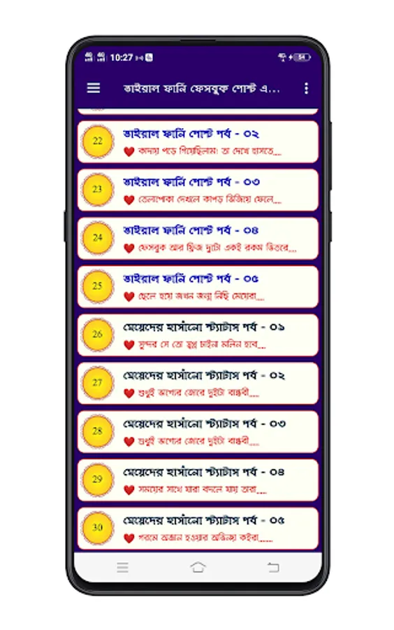 ২০২২ সালের সব নতুন নতুন ভাইরাল হাসির ও মজার স্ট্যাটাস পোষ্ট নিয়ে আমাদের এই নতুন “উরাধুরা হাসির স্ট্যাটাস” App-টি। আর এই স্ট্যাটাস গুলি বাছাইকৃত এবং সুন্দর করে সাজানো রয়েছে।