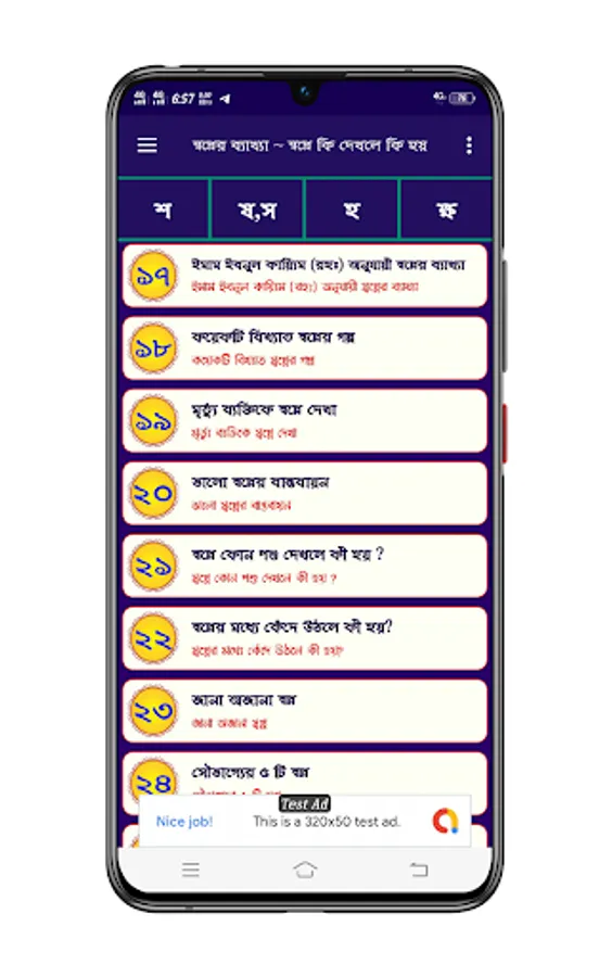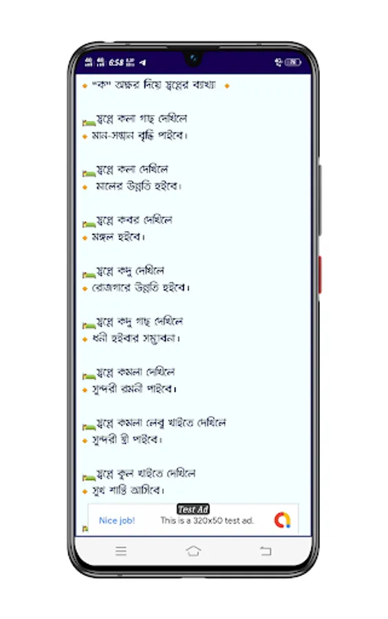 স্বপ্ন কে না দেখে, ভালো স্বপ্ন, খারাপ স্বপ্ন, সকল ধরন স্বপ্নের ফলাফল ও স্বপ্নের ব্যাখ্যা জানতে আমাদের এই অ্যাপ। sopner bekkha/ sopner bakkha জানাটা খুবই জুরুরি।স্বপ্নের ব্যাখ্যা একটি শরয়ী বিদ্যা কথাটি বলেছেন শায়খ আব্দুর রহমান আস সাদী রহ.। সোলেমানি খাবনামা অনুযায়ী বিভিন্ন স্বপ্নের বিবিধ ফলাফল দেখতে অক্ষর দিয়ে স্বপ্নের সঠিক ব্যাখ্যা ও ফজিলত জানুন। সঠিক স্বপ্নের ব্যাখ্যা জানা সকলের জন্য জরুরী। কেননা স্বপ্ন অনেক গুরুত্বপপূর্ন তথ্য বয়ে আনে। এই এপটিতে অক্ষর অনুযায়ী অনেক স্বপ্নের ব্যাখ্যা দেওয়া আছে যার জন্য স্বপ্নের ফলাফল সহজেই খুজে বের করা যাবে।