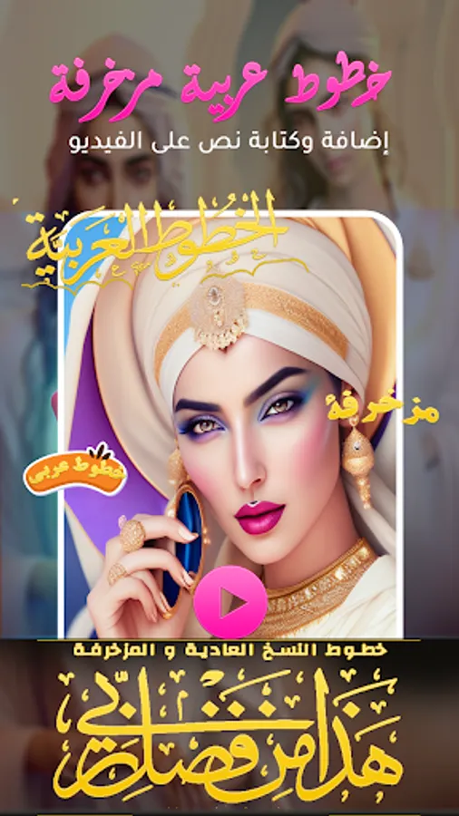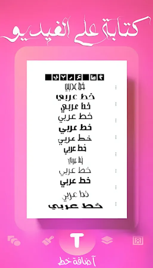 Our app is one of the most popular apps for adding text to an app, you can add text to an app with more than 100 different fonts. You can also adjust the color, size, and position of the text, and add text, overlays, filters, and effects to the video. You can also use Arabic calligraphy writing on video to create photo collages and montages.
