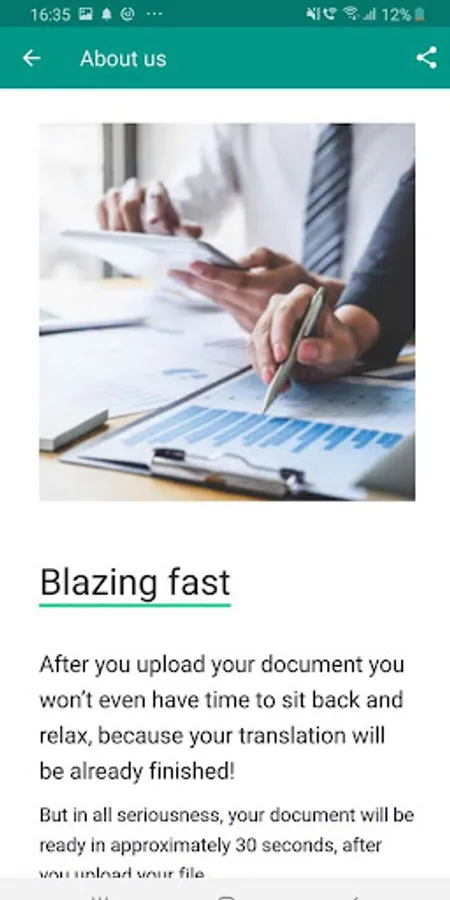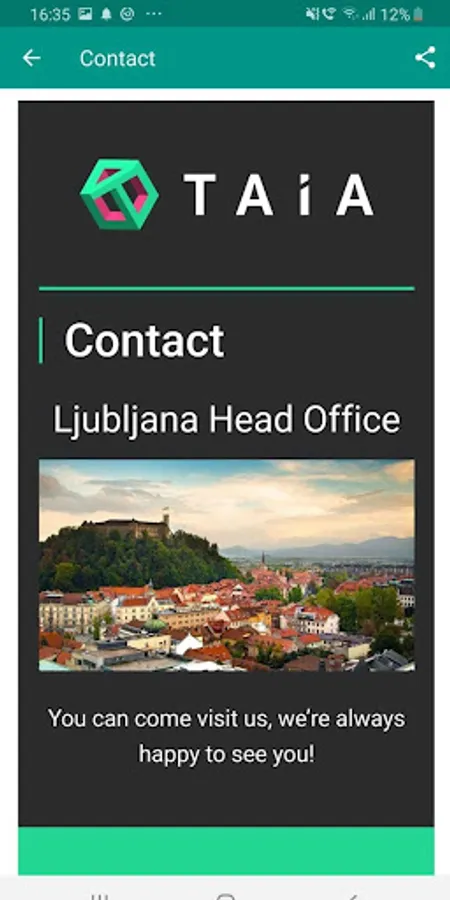 TAIA's mobile application, where you can view the range of services, the purpose of the application is to present the company and to facilitate access to the offer.