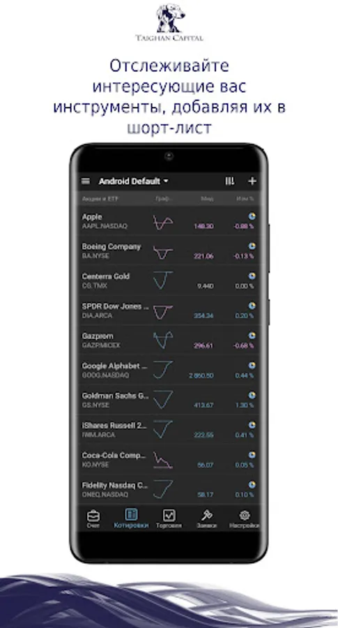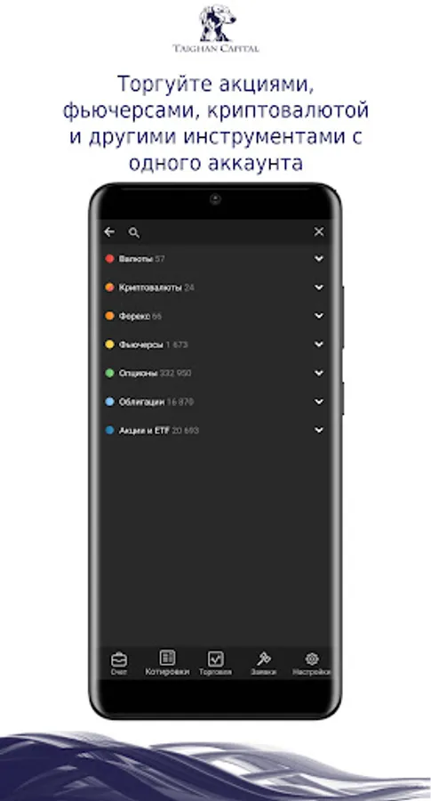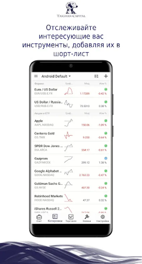 Taighan is a mobile trading platform that provides instant access to all financial markets and instruments from a single multi-currency account. Taighan allows you to trade online in over 50 financial markets including NYSE, NASDAQ, CBOE, MOEX and Euronext Group.