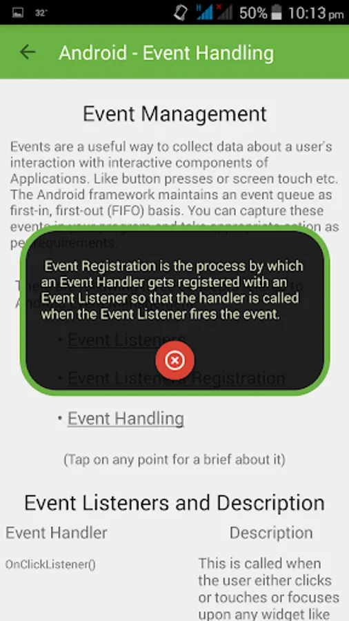 Then comes the Android UI part that describes the widgets like Buttons, TextView, EditText, Radio Buttons, Listview, and various layouts like Relative Layout, Linear Layout, Absolute Layout, Table Layout, etc. It also covers Event Listener and Event Listener registration.