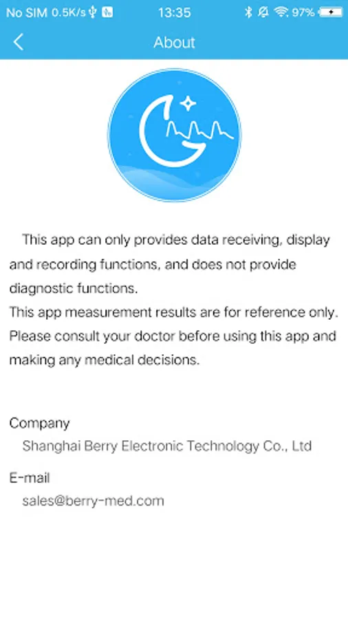 This APP only provides the function of receiving, displaying and storing data via Bluetooth, it is not intended for medical use, it is only designed for general fitness and health purposes, it is not a medical device, and we do not provide any diagnostic functions.