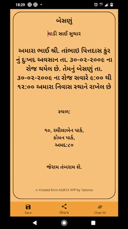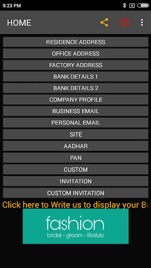 AddFLY is an information store and shares android application. You can easily store and share your addresses, invitation, email address, Bank details, GST number and much more in any format or social media like SMS, E-mail, Whatsapp, Instagram etc. With the help of AddFLY application, you can avoid SOS typing of frequent required details. This application also save your time and remove mistakes while typing in emergency. No requirement of any documents in handy. No need to type information again and again. Only save once and use it whenever and wherever required.