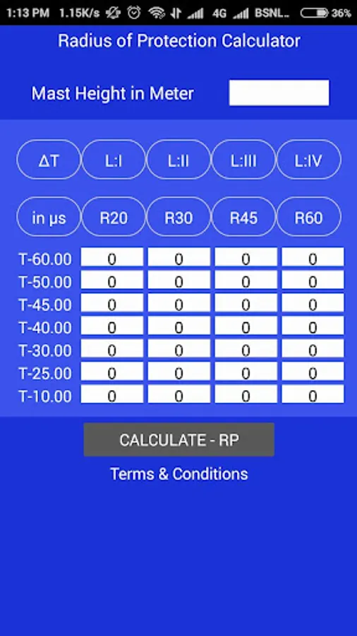 This application calculate the radius of protection of Lightning Arrester as per the specified mast height for different protection levels.