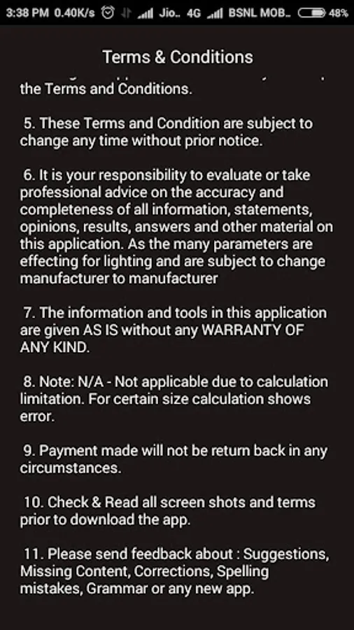 7. The information and tools in this application are given AS IS without any WARRANTY OF ANY KIND.