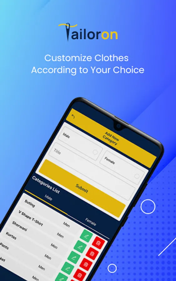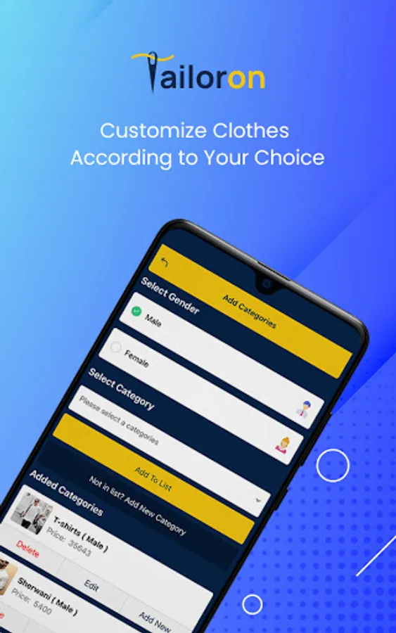 Tailoron mobile app has been designed and developed after thorough research keeping in view the requirements of such businesses. It could be a great choice for anyone looking to establish an online tailoring business using this app as it would allow businesses to add the clothing lines and styles they offer which could then be customized by end users online using this app as can be seen in the demo of this app. This application has some excellent features as mentioned below which would help any potential businesses to start their business with this affordable yet comprehensive system.