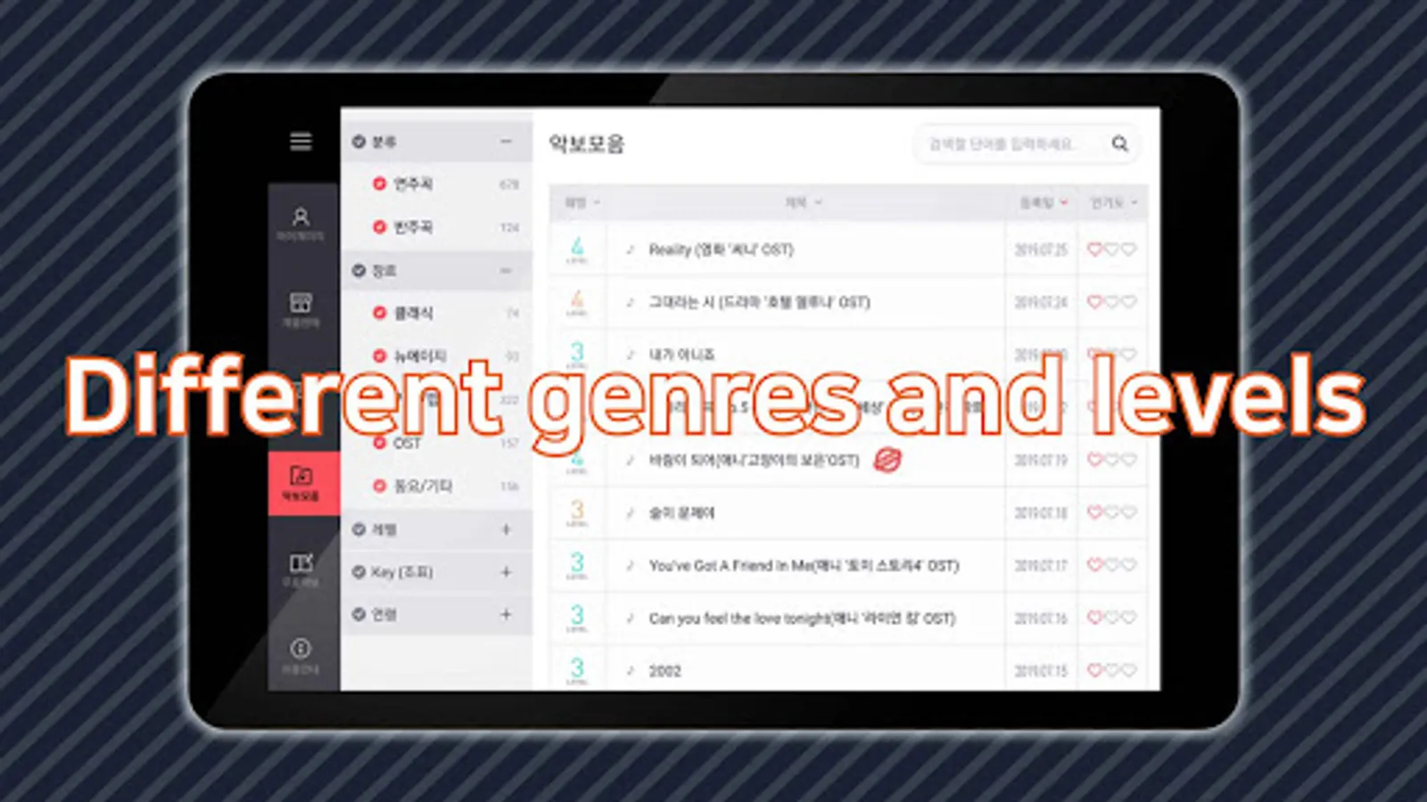 — Piano School provides sheet music in 6 levels - from Beginner level to Lv.5 -