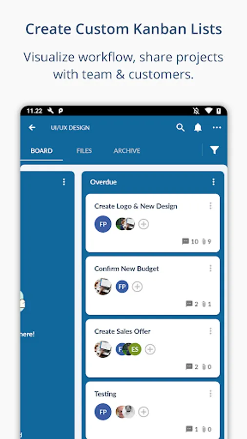 - Custom Kanban boards: create multiple custom #Kanban lists and visualize project progress.
