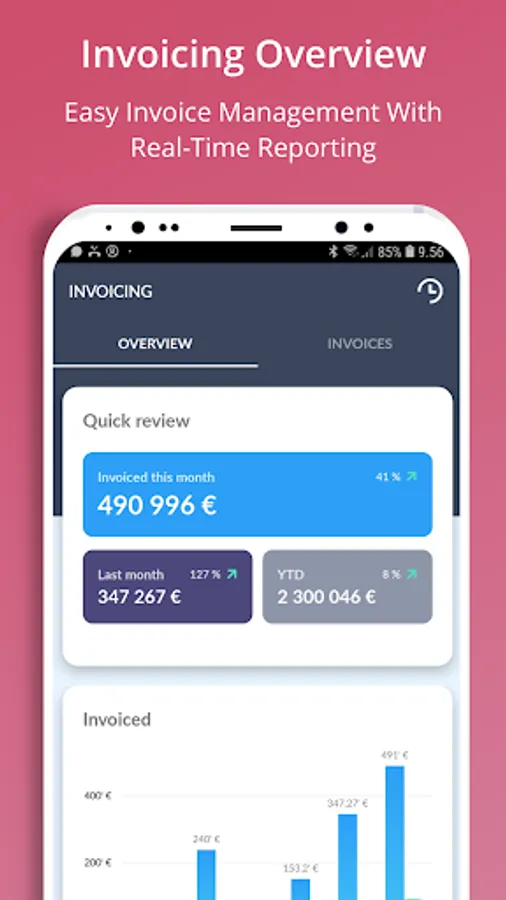 With Heeros Small Business & PSA you will always be tuned and in control of your business and projects, even on the go. Simply manage unlimited projects, charge per hour or other factors, track and log your own and the team members´ time or utility, collaborate across teams, use ready-made invoice templates, and add your expenses or receipts easily by your phone´s camera.